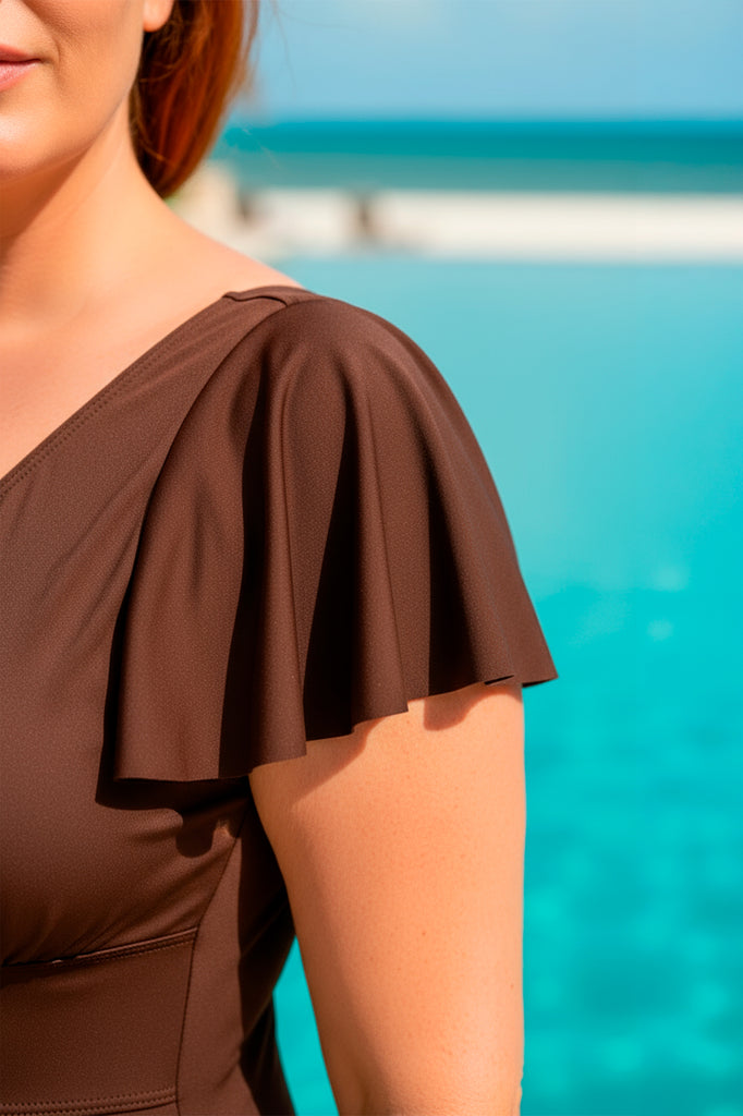 Nuestro clasico modelo mas vendido de siempre reformulado. Malla lisa en talles grandes con recorte bajo el busto y mangas con volados. Forrada En todo el espectro de nuestras tallas del 44 al 60. Con porta push-up (bolsillo para el agregado de protesis). Marca "Mare Moda".